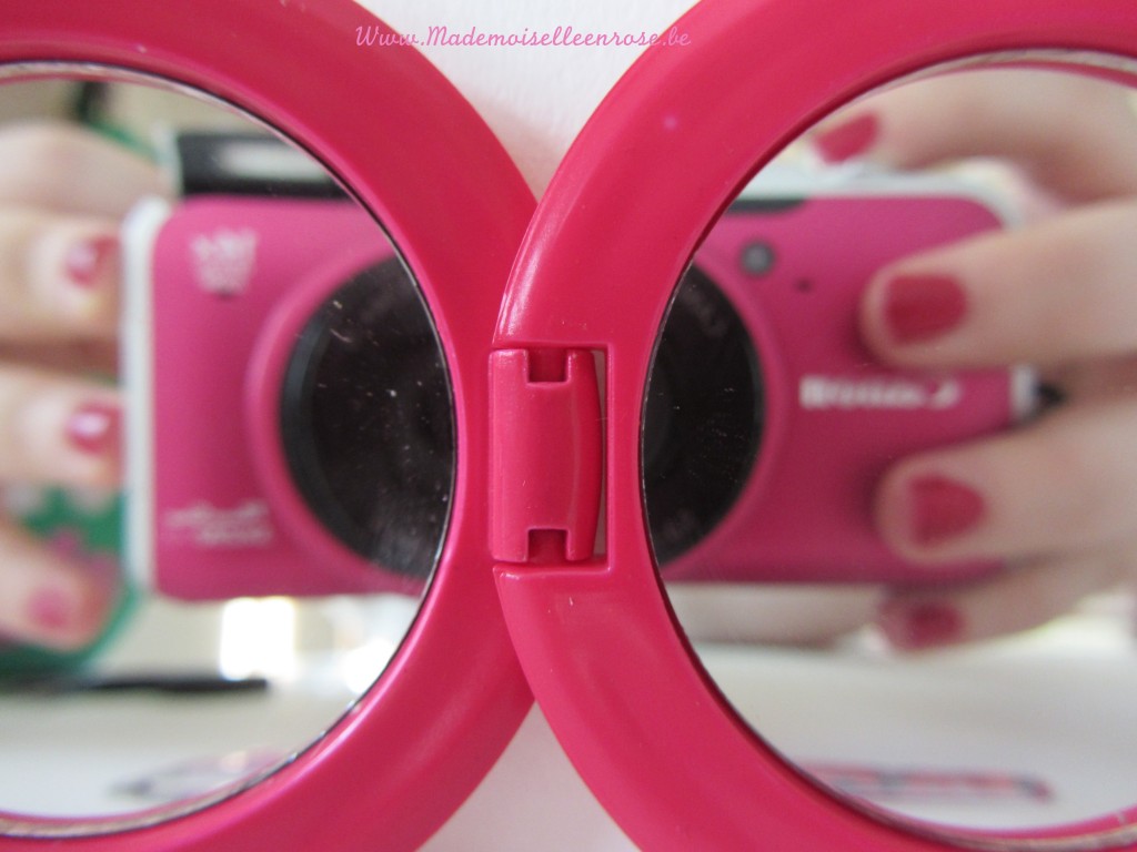 Het tweede accesoire dat ik heb gekocht is het spiegeltje in pocket formaat, en dus altijd handig om even snel bij te werken als je niet thuis bent voor je geliefde spiegels. In ieder kantje zit een spiegeltje, waarvan 1 normaal en 1 dat 3 keer zou moeten vergroten. Over dit laatste zou ik niet bepaald juichen. Ik zie niet veel verschil tussen de 2 spiegeltjes, en vind het 3 keer vergrotende gedeelte wat overdreven.